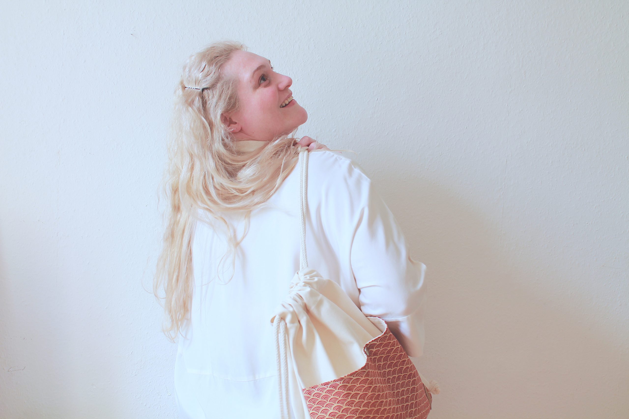 Die breiten, justierbaren Baumwollbänder bieten sicheren Halt auch bei schwerem Inhalt. Die große Außentasche mit Metallknopf ermöglicht schnellen Zugriff, die Innentasche schützt Wertsachen. Maschinenwaschbar und pflegeleicht.